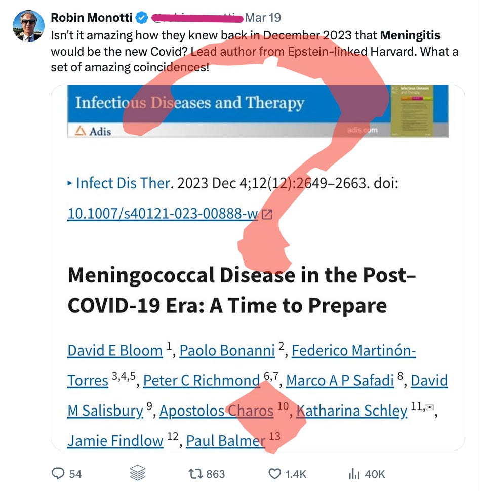 Robin Monotti even found a way to link the outbreak to Jeffrey Epstein!