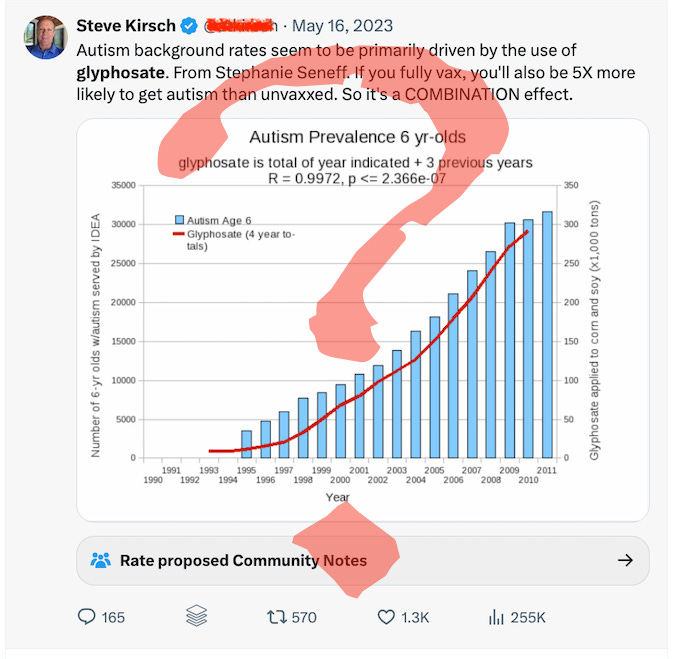 And not surprisingly, some find a way to blame both vaccines and glyphosate, you know, to cover all of their bases.