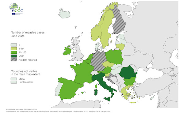 ECDC Surveillance and monitoring Monthly measles and rubella monitoring report - July 2024.