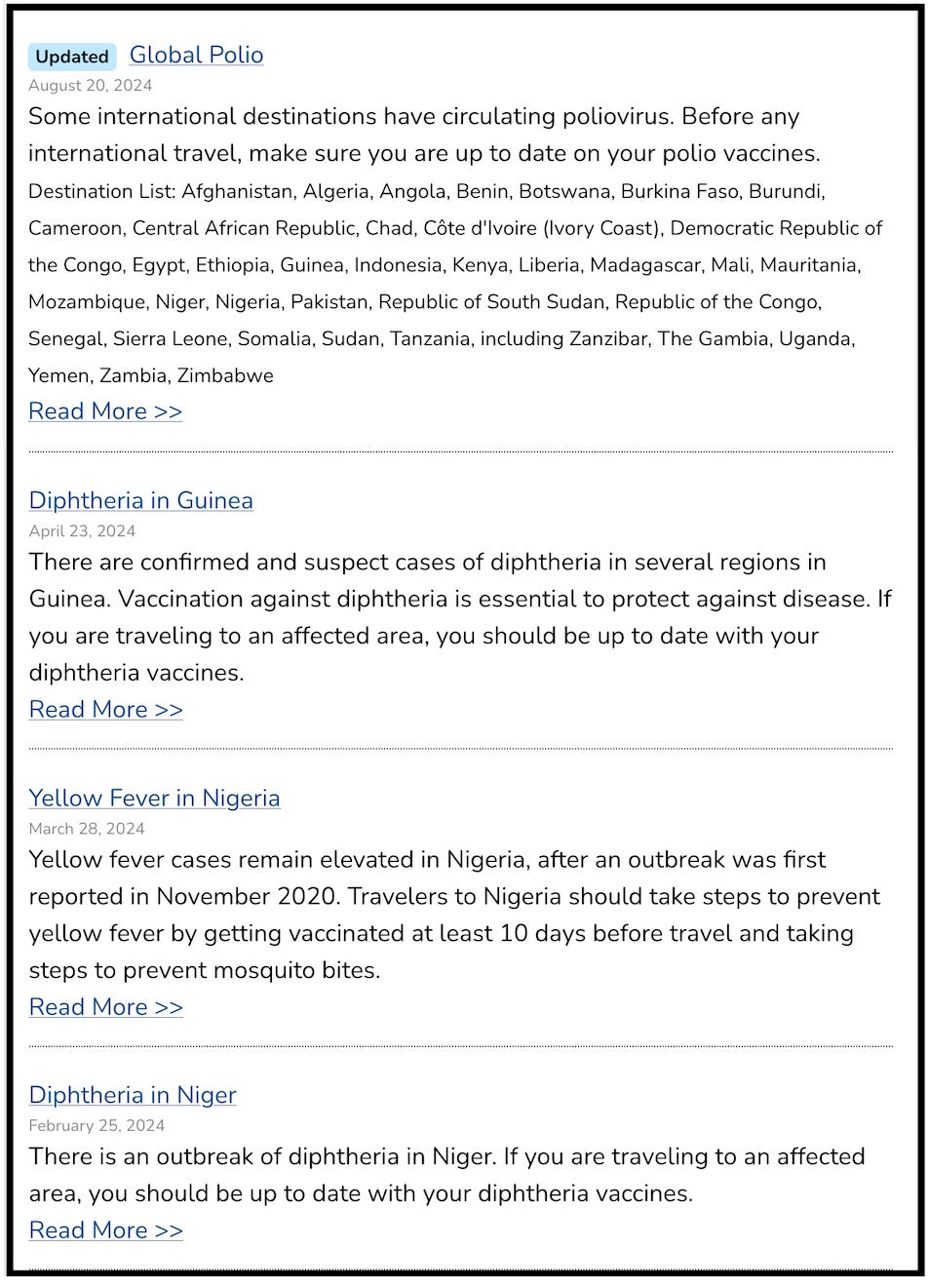 Global Measles Travel Health Notices