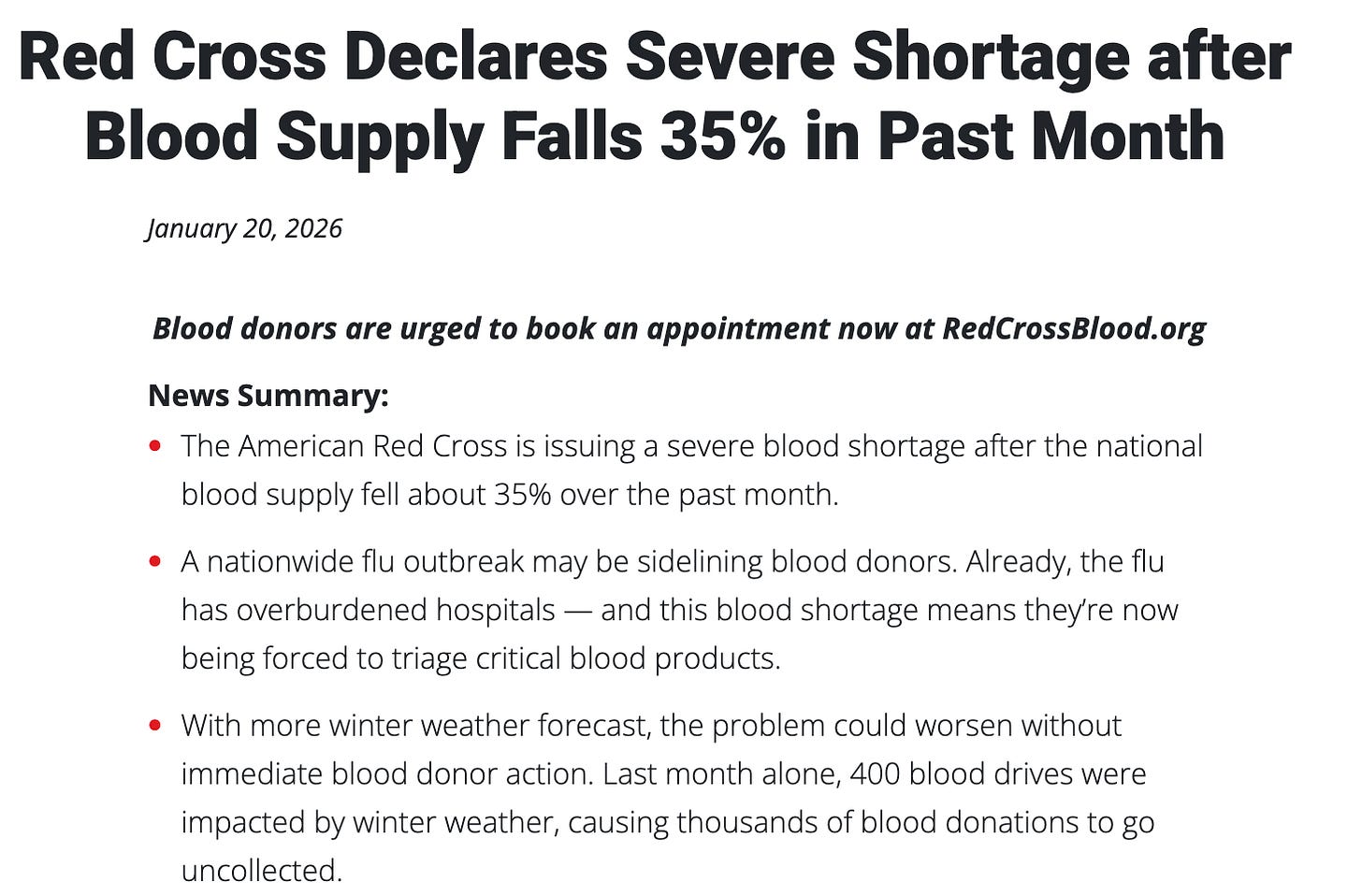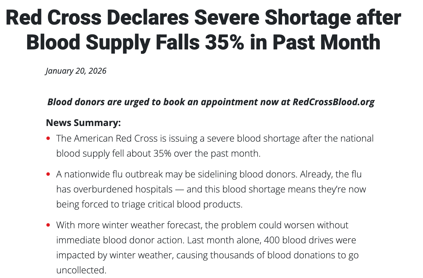 But what does this have to do with the severe blood shortage that the Red Cross reported in January?