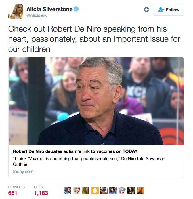 Remember when Robert De Niro promoted Andy Wakefield’s movie and pushed the idea that vaccines are associated with autism?