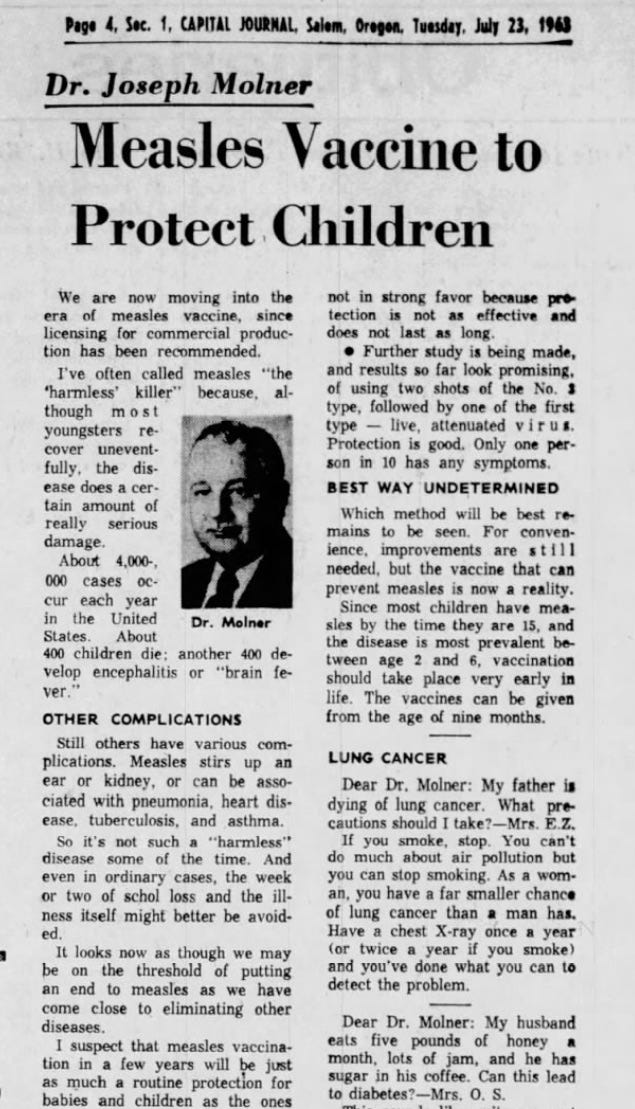 Measles deaths were already down 98%, so we didn’t need a measles vaccine.