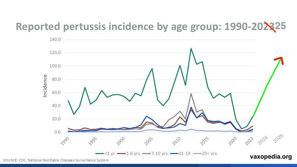 In fact, after a recent low in cases and deaths, pertussis cases are now up over 1250% in the past four years!