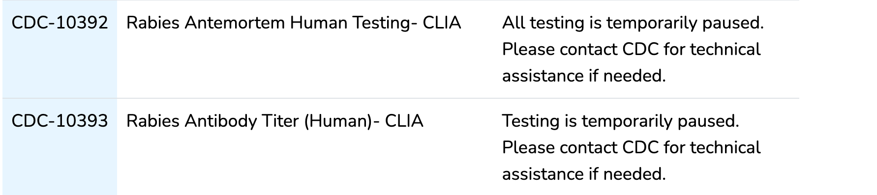So rabies testing will still get done if you or your pets are first exposed to rabies (but not after you are bitten and develop symptoms of rabies)!
