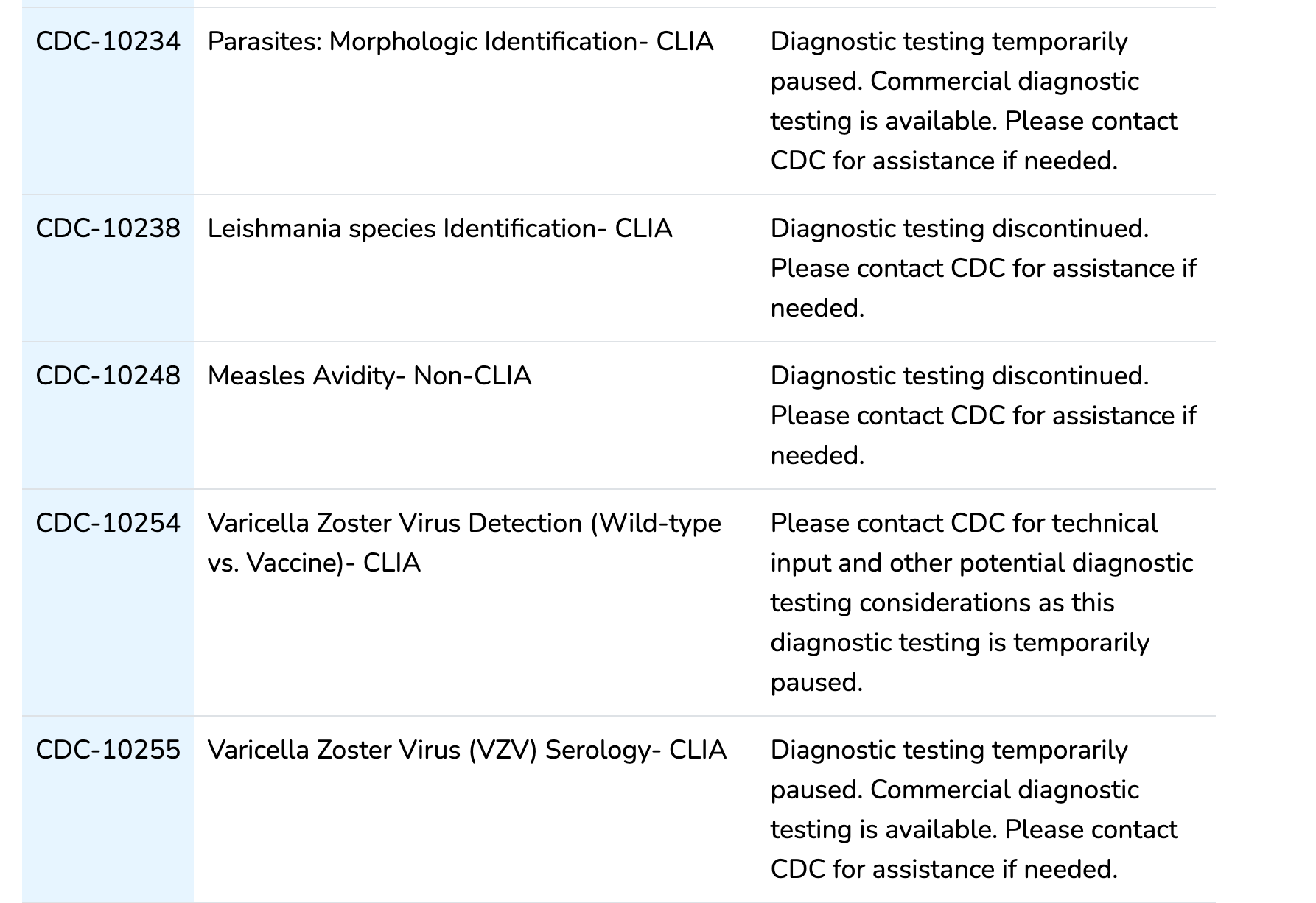 Have you heard that the CDC has stopped doing some testing, including testing for adenovirus, chickenpox, mpox, measles, and many other infections?