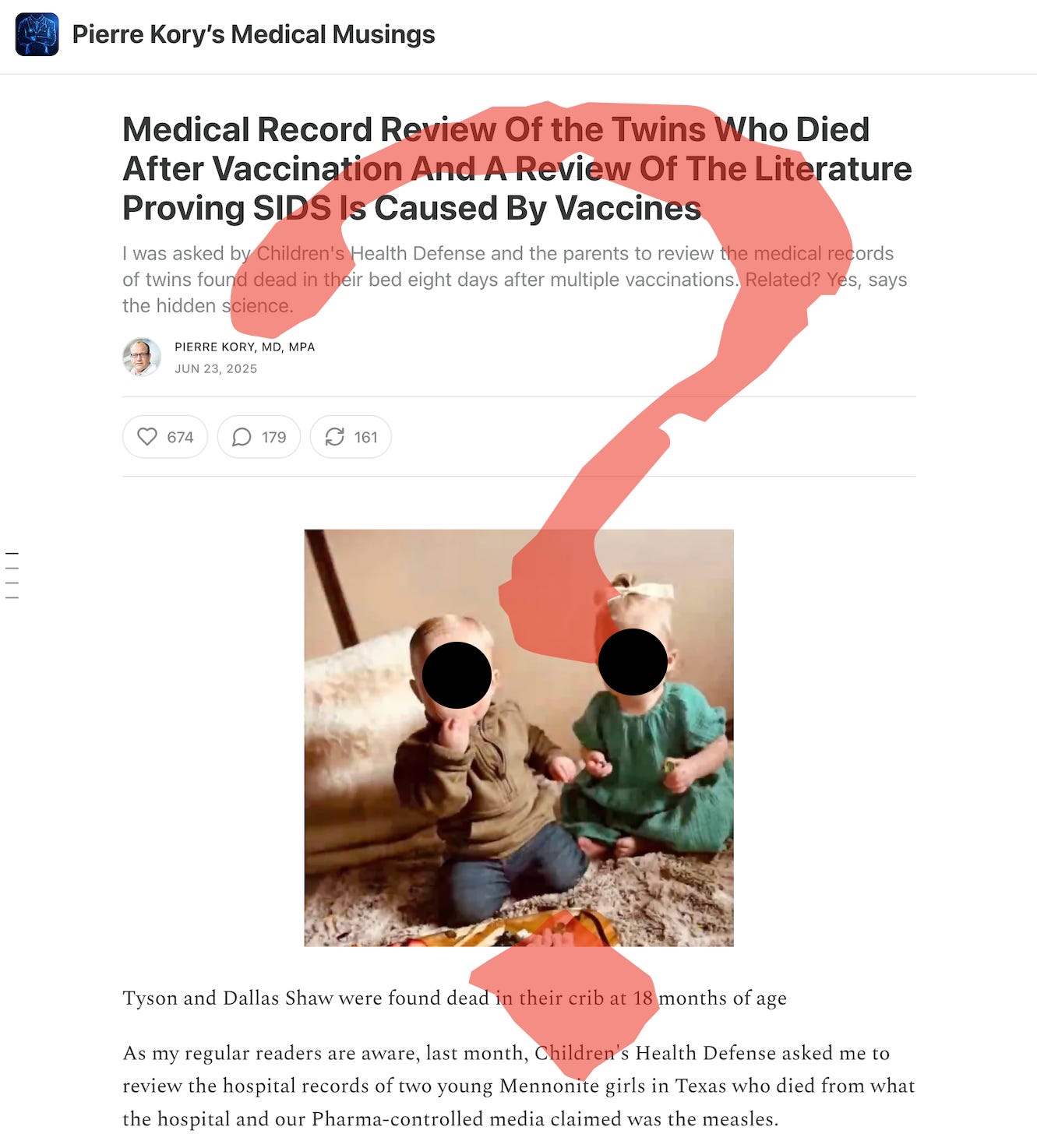Pierre Kory, the anti-vaccine influencer who tried to claim that the kids in Texas didn’t really die because they had measles is now talking about SIDS.