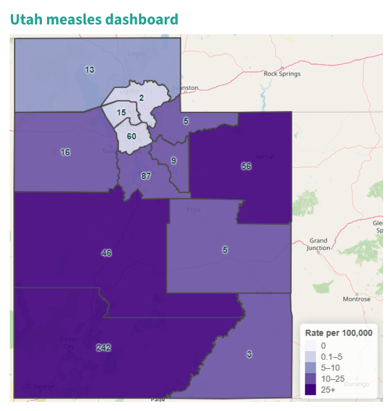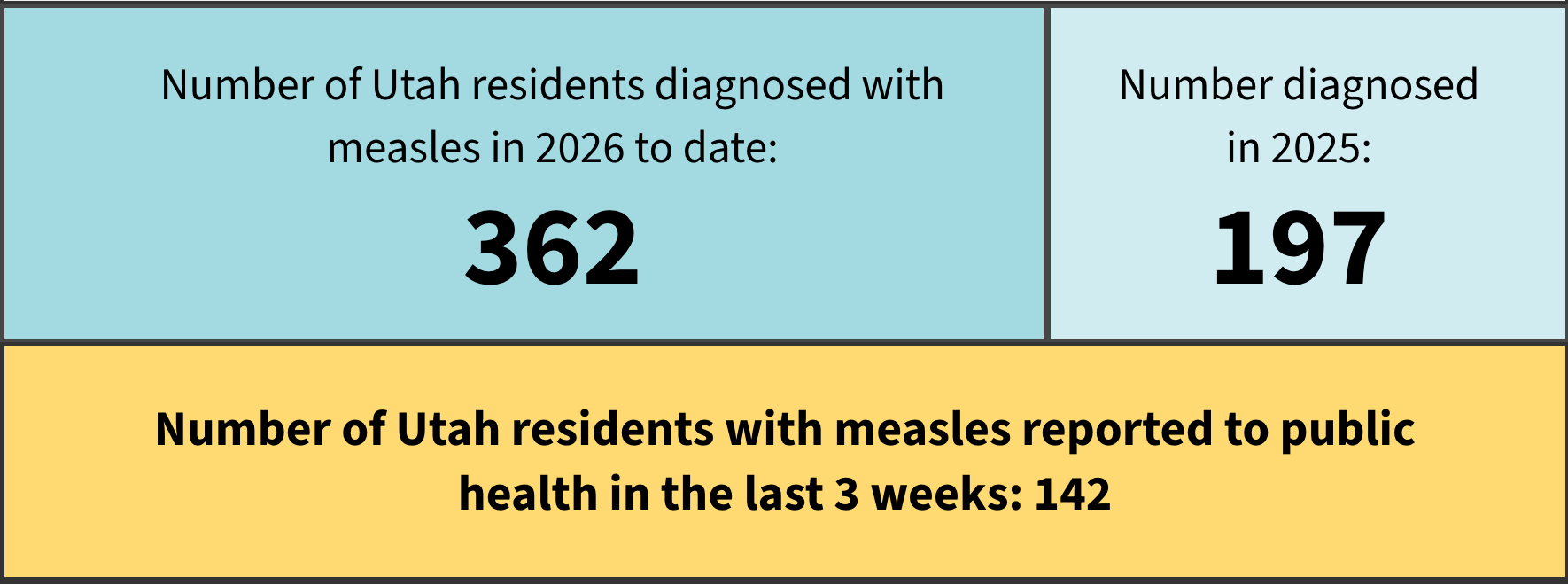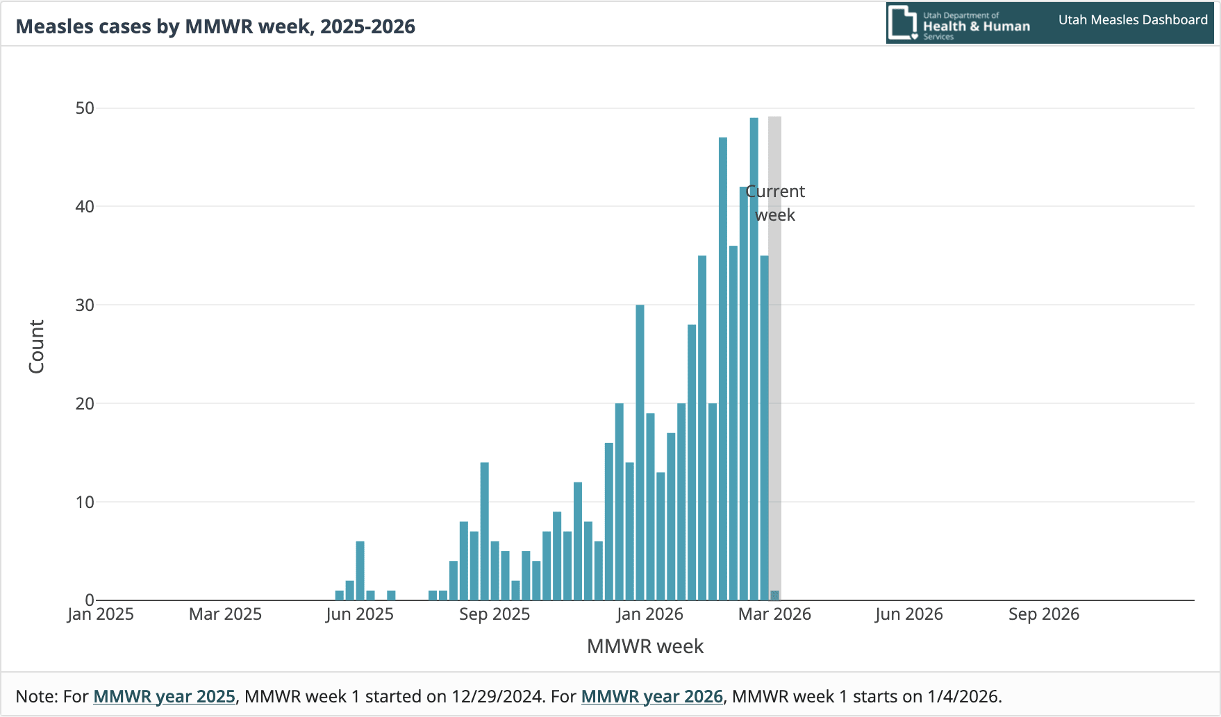 That includes getting an early MMR for infants who are at least six months old “because measles is spreading throughout Utah,” with a repeat dose at 12 months.