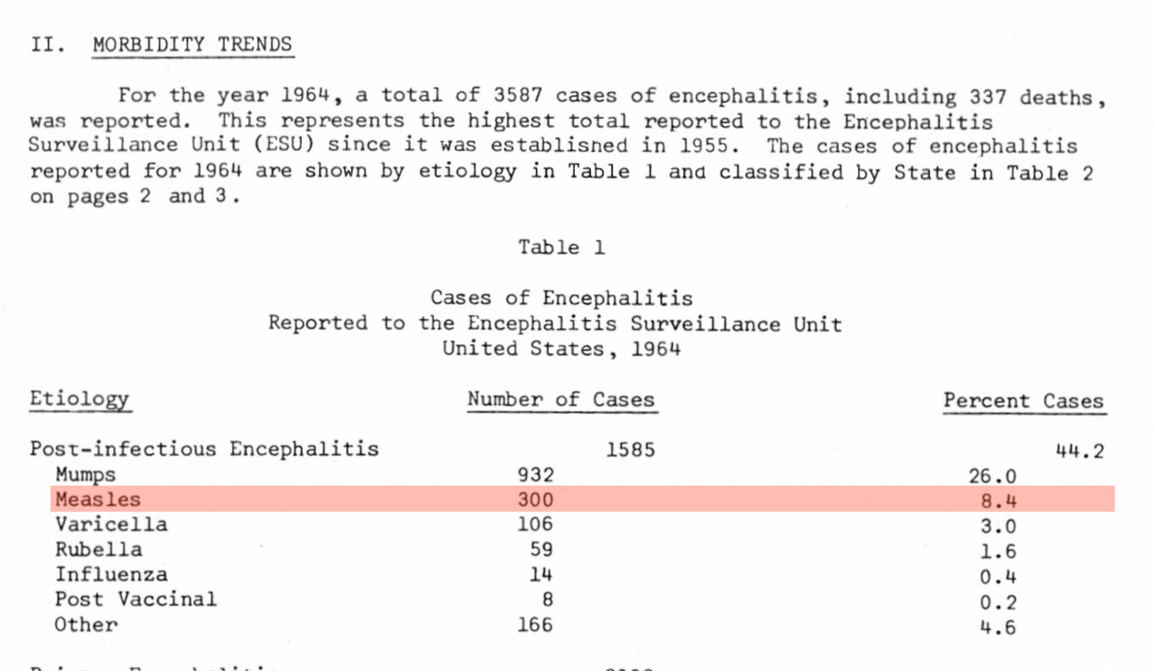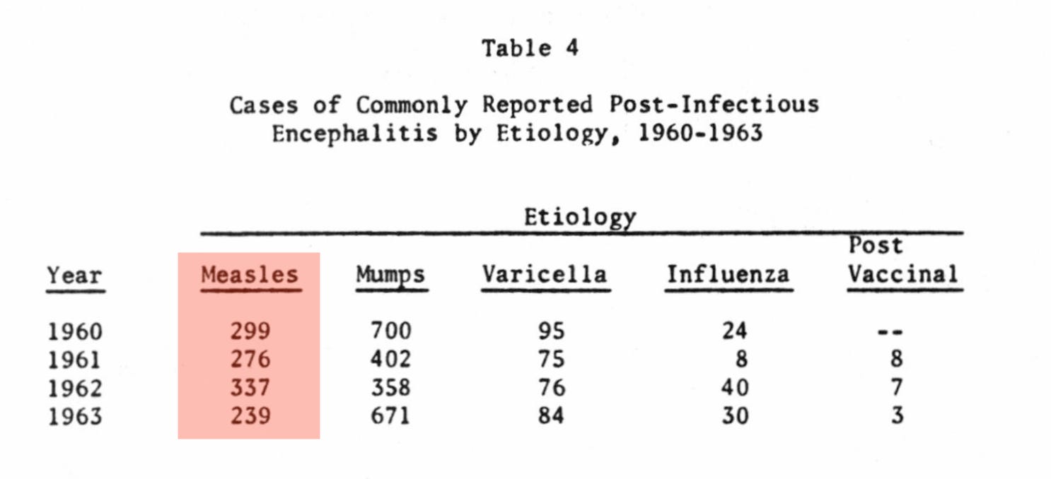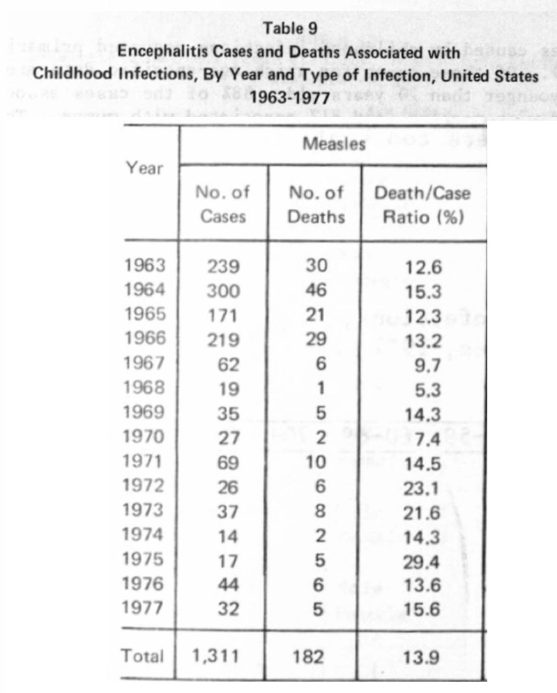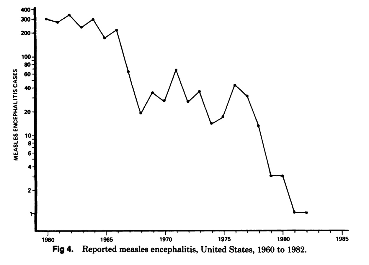 In contrast, in 1964, there were at least 300 cases of measles encephalitis!