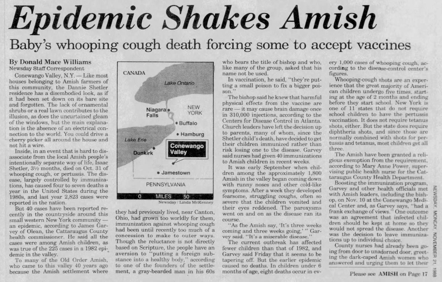 Study: Low vaccination rate in Amish children linked to hospitalization :