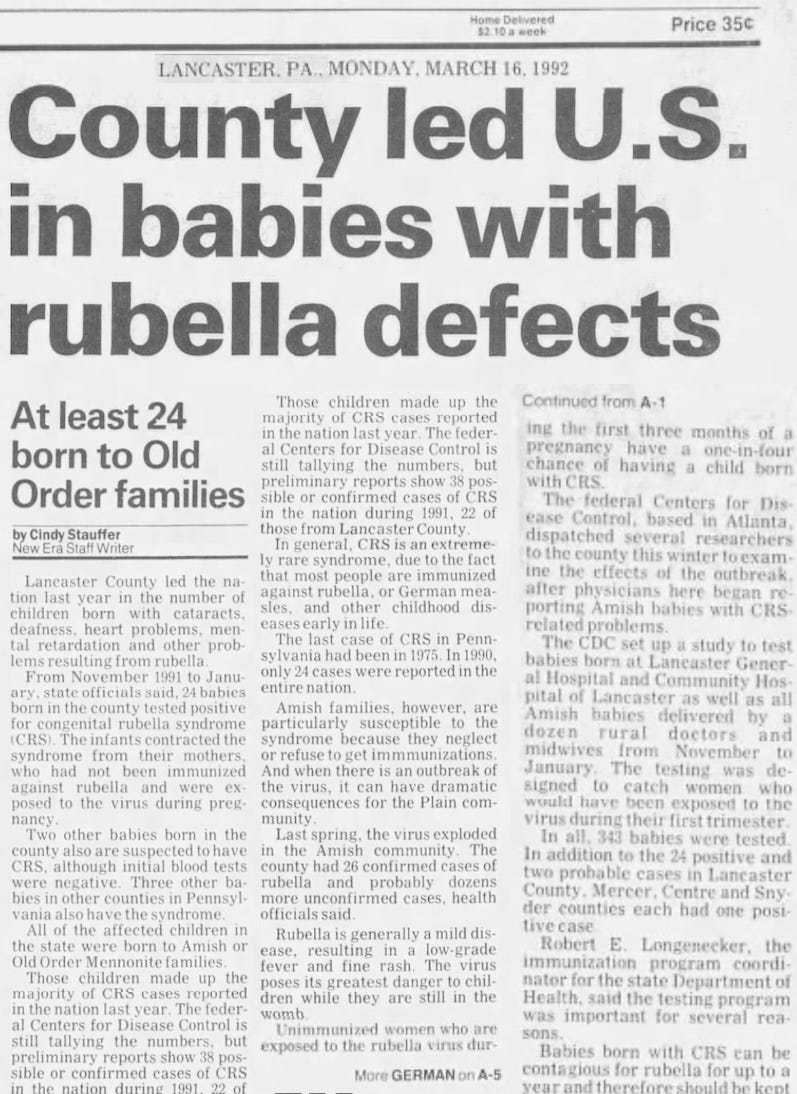 Did you know that a rubella outbreak among the Amish in 1991 led to many babies being born with congenital rubella syndrome.