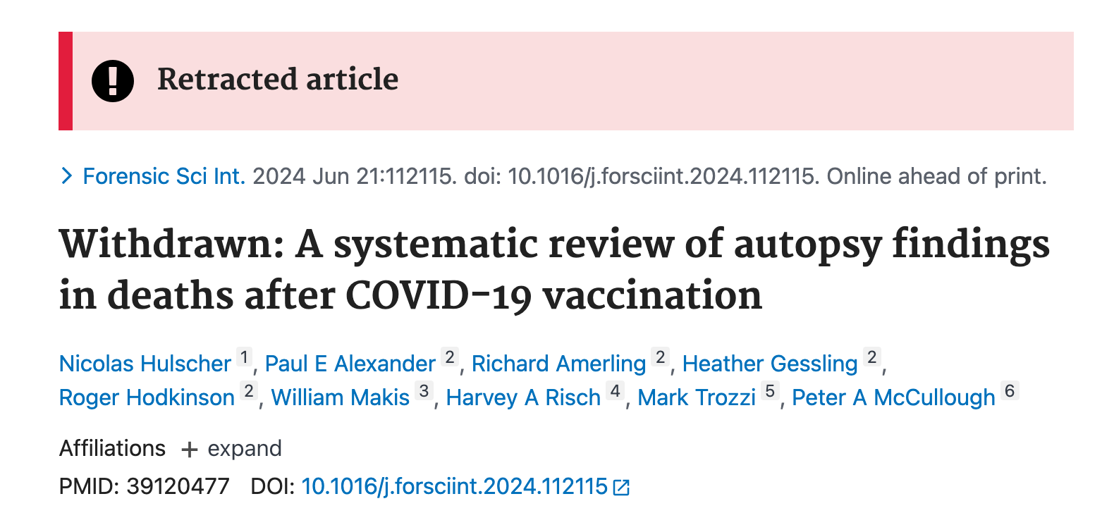 Withdrawn: A systematic review of autopsy findings in deaths after COVID-19 vaccination
